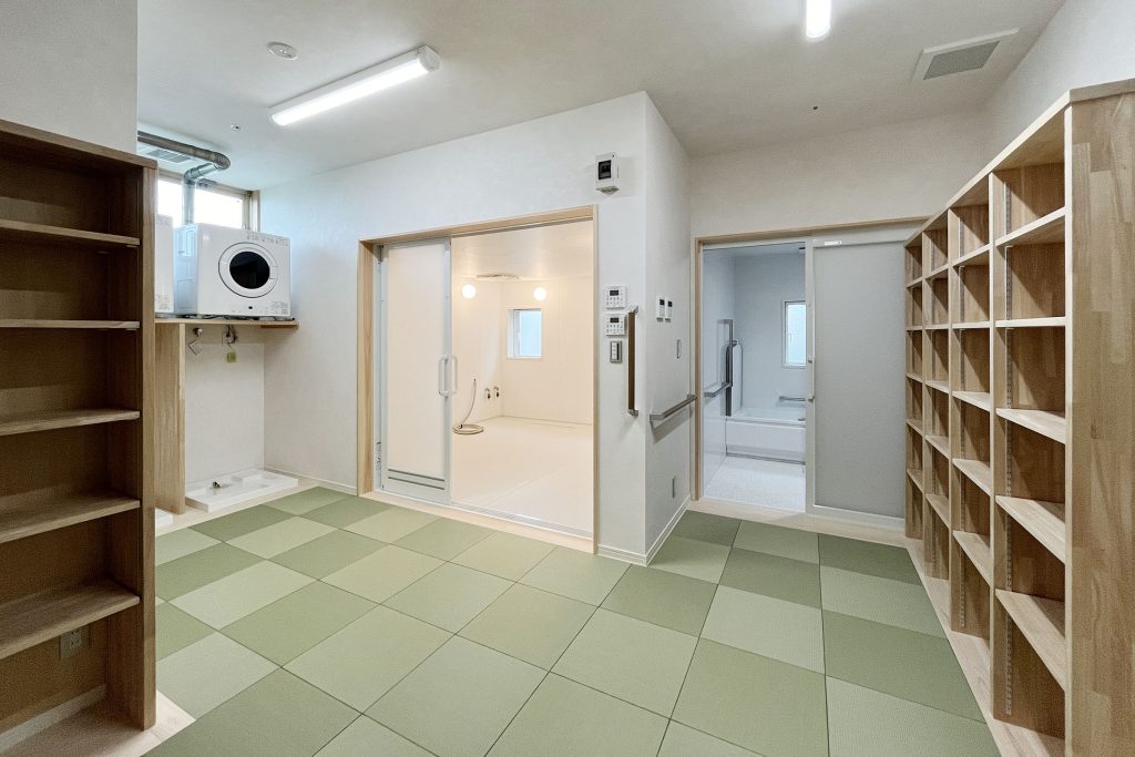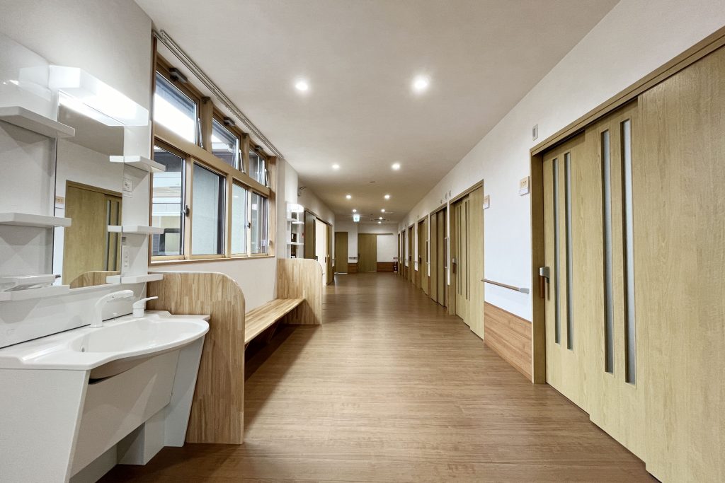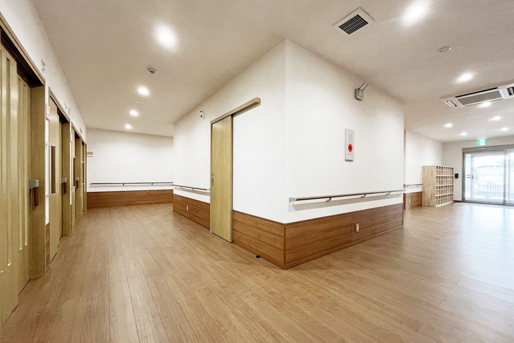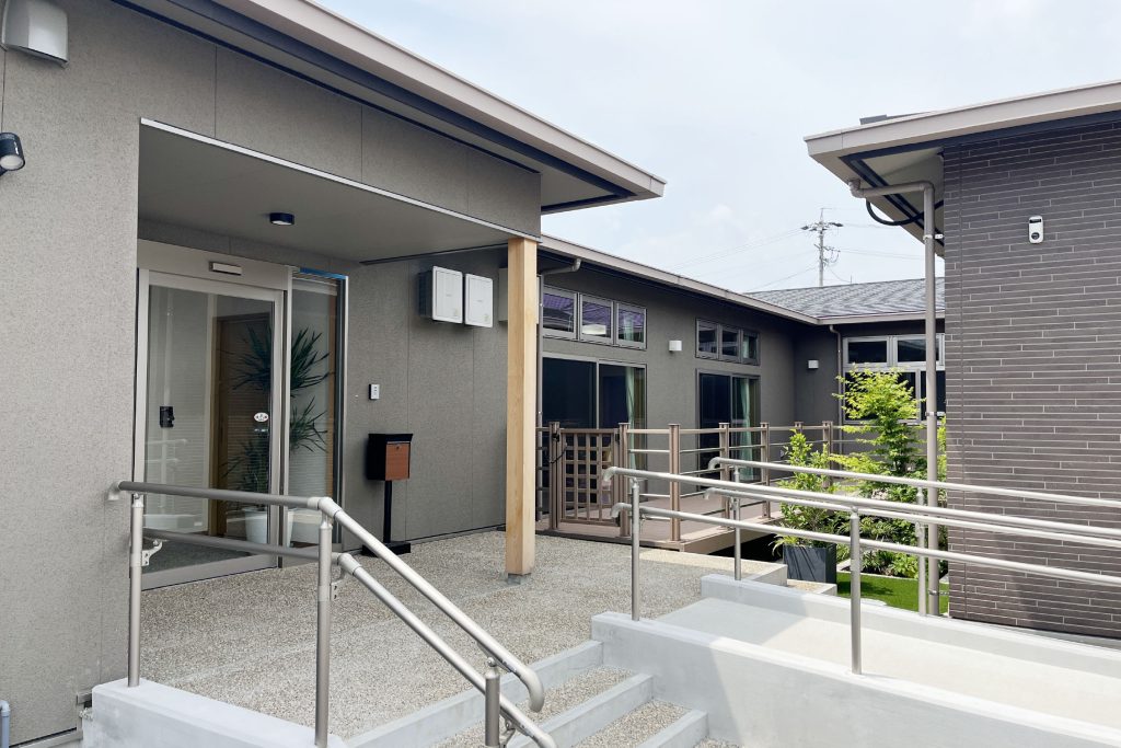 施設事例 住宅型有料老人ホーム│のぞみの家 自社設計 敷地面積:1120.39㎡ 延床面積:664.84㎡ 木造平屋建て 19室 住宅型有料老人ホーム│おひさまの笑顔 幼稚園│あさひキッズインターナショナル