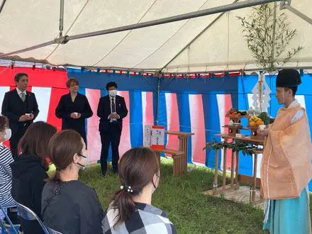 今日の地鎮祭は、いつもと違い、和気あいあいとした雰囲気。