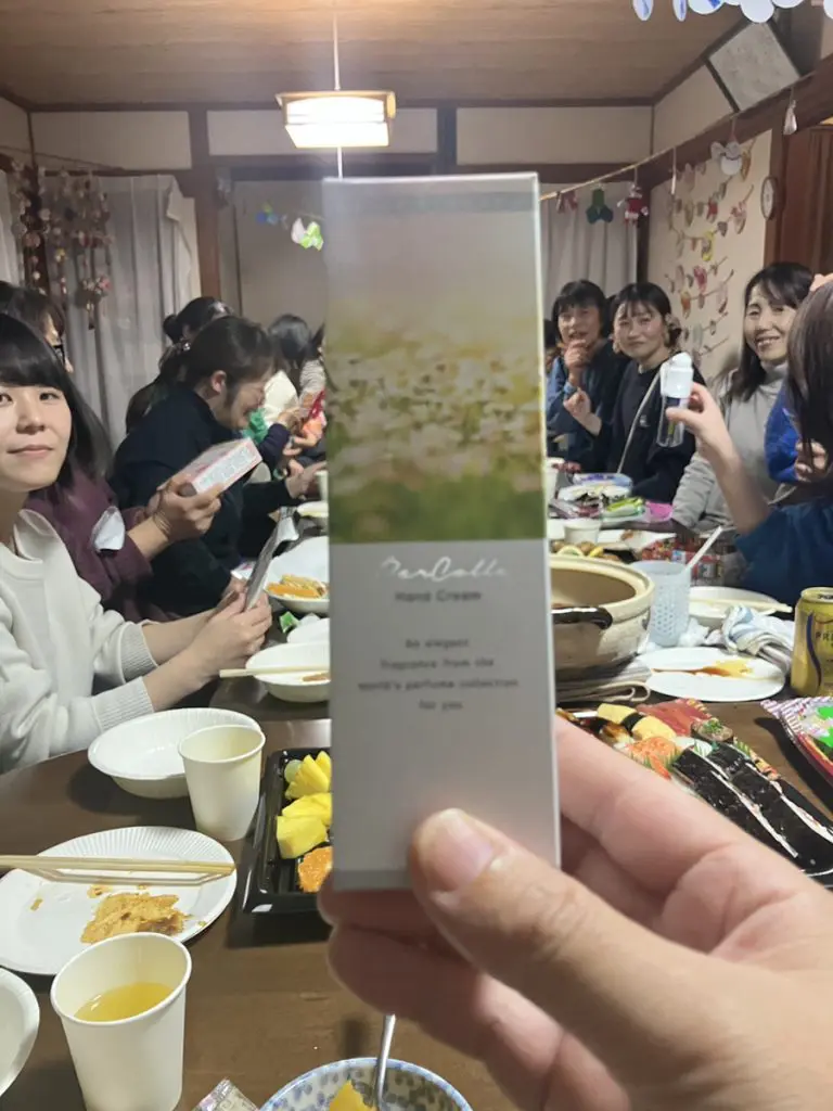 特に盛り上がったプレゼント交換では、なんと代表いわく、「セクシーな香りがする」というハンドクリームを私がゲット!🎁✨